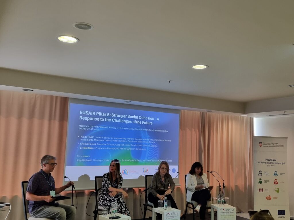 U okviru konferencije predstavnici MROSP-a organizirali su panel raspravu „EUSAIR Stup 5: Snažnija socijalna kohezija – odgovor na izazove budućnosti“. Moderator je bio Filip Miličević, voditelj Službe za programiranje (MROSP), a sudionici Estelle Roger (DG REGIO, program menadžerica), Krisela Hackaj (Albanija, direktorica Instituta za suradnju i razvoj) i Naida Mekić (MROSP, načelnica Sektora za programiranje financijsko upravljanje i provedbu financijskih instrumenata). Sudionici su naglasili važnost uvođenja tema socijalnog uključivanja u Strategiju s posebnim naglaskom na pozitivan učinak koji će imati na zemlje ne-članice Europske unije, a koje su uključene u EUSAIR (Albanija, Bosna i Hercegovina, Crna Gora, Sjeverna Makedonija, Srbija).