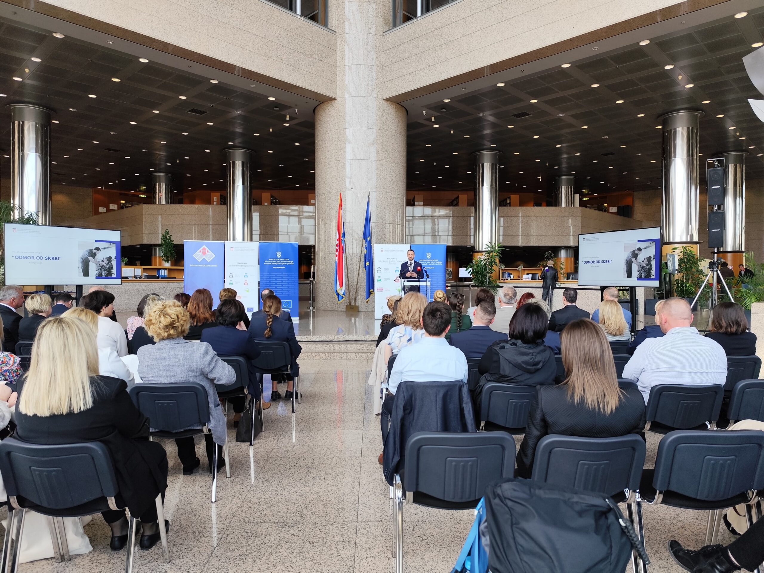 Danas je u Nacionalnoj i sveučilišnoj knjižnici u Zagrebu održano svečano potpisivanje i dodjela ugovora za 35 projekata u okviru Poziva Inovativne socijalne usluge – odmor od skrbi (pilot projekt) u vrijednosti od gotovo 4,9 milijuna eura.